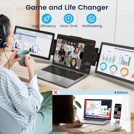 Portable Triple Monitor for 13-16" Laptop, Extender 12Inch Screen Dual Display Travel Extended Foldable Workstation Monitor Display